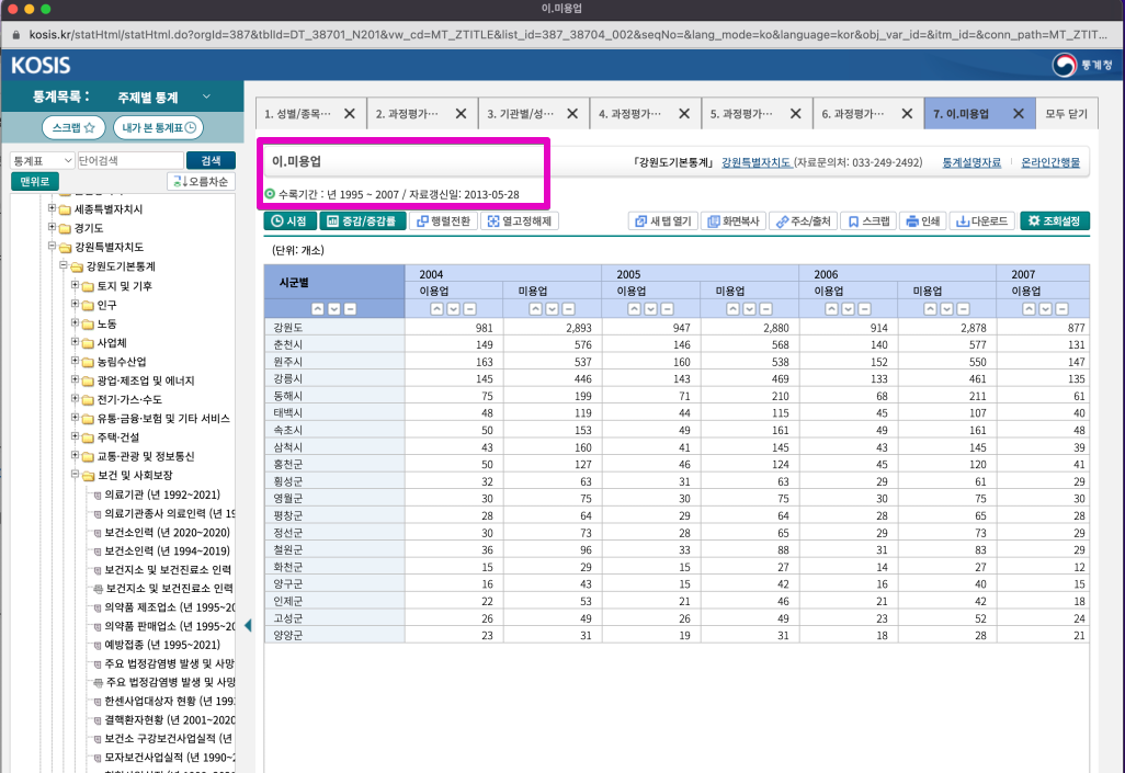 아 이런 부분에 대해서 통계자료가 많지 않구나,