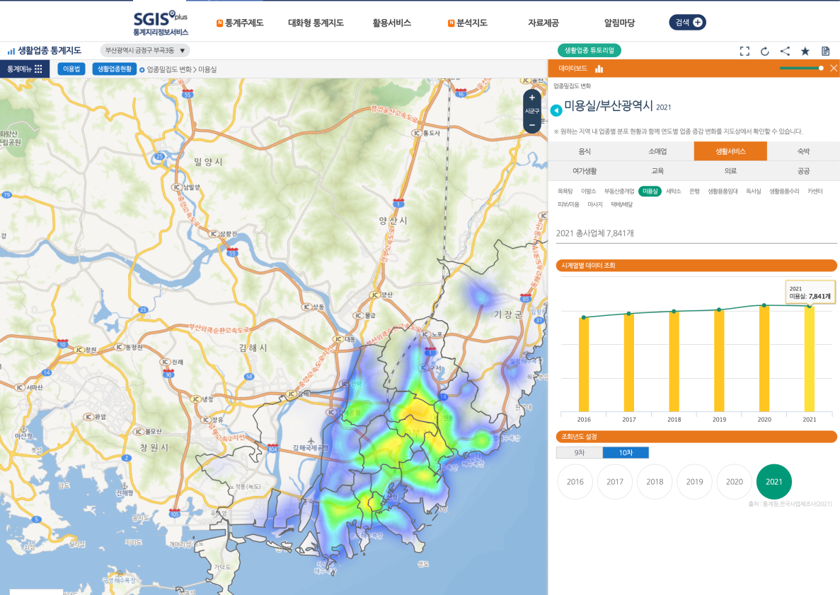 아마 기간 별 & 지역 내(동) 개업 미용실 개수로 간단하게 구한 것으로 보여요!!